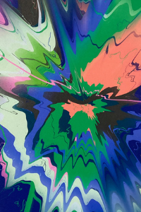 The algorithm itself is written in p5.js, a JavaScript library, and stored on-chain. It draws on a combination of techniques — WEBGL shaders, Perlin noise, trigonometric functions — to replicate the centrifugal motion of paint on a spinning surface without any paint, any canvas, or any spinning. The serendipity is preserved; the mechanics are entirely digital.