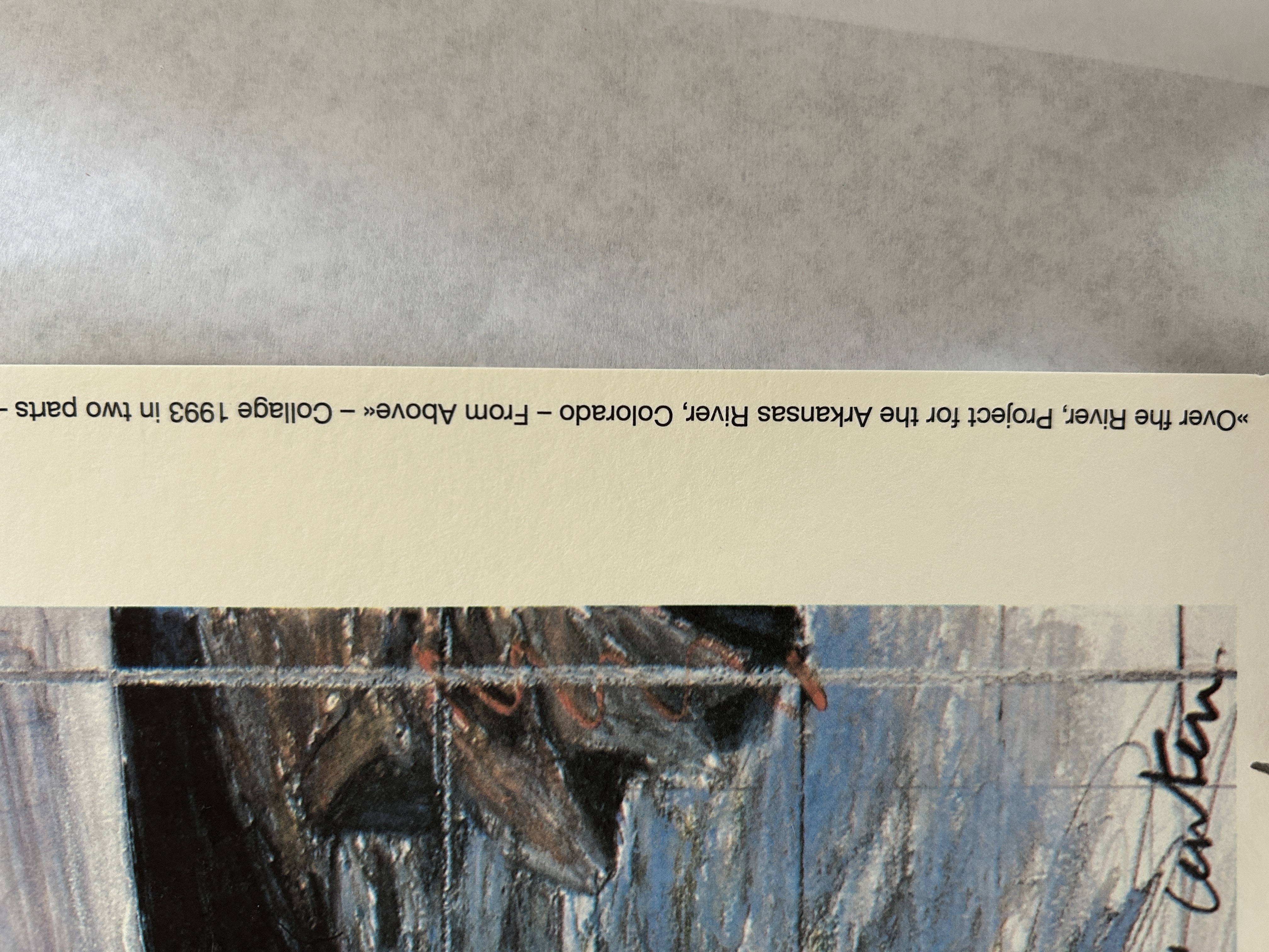 Full sheet: 33.5 H x 25.7 W inches Christo and Jeanne-Claude's vision for Over The River was conceived in 1992 and included 9.5 kilometers (5.9 miles) of silvery, luminous fabric panels to be suspended clear of and high above the water in eight distinct areas along a 67.6-kilometer (42-mile) stretch of the Arkansas River between Cañon City and Salida in south-central Colorado. The planning process however, led to many frustrating years of dealing with federal bureaucracies for approval and environmental protests. Jeanne-Claude also passed away during this time in 2009. After 20 years and going through five years of legal arguments, Christo decided to abandon the project. Over the River still remains one of the most talked about unrealized projects of Christo and Jeanne-Claude today.